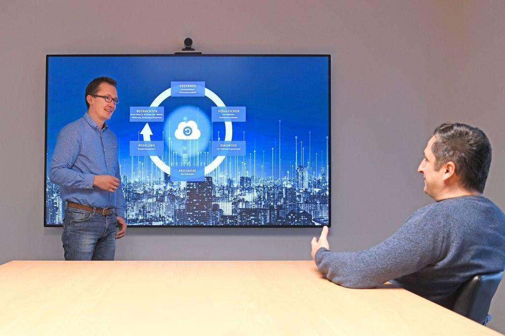 Bu: Dr. Benjamin Adrian und Dr. Alex Sarishvili erforschen und evaluieren datenbasierte maschinelle Lernverfahren, um eine Prognose von Energieverbräuchen zu ermöglichen. Auf dieser Basis werden Maßnahmen sowie deren Einsparpotential ermittelt. © Fraunhofer ITWM