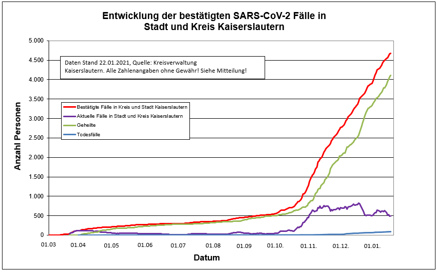 Die Corona-Zahlen für die Stadt und den Landkreis Kaiserslautern können Sie dieser Statistik entnehmen: