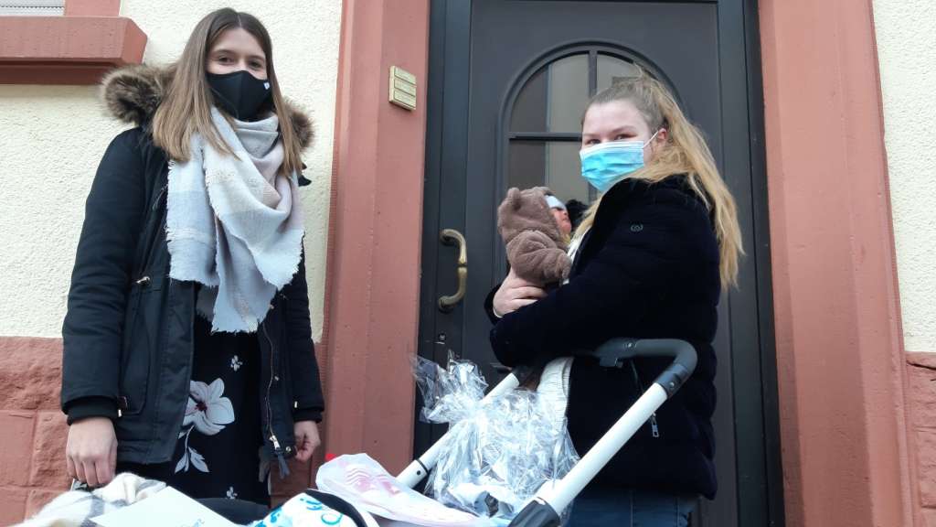 Die Geldgutscheine verbunden mit allen guten Wünschen für die jungen Familien wurden durch die Sparkassen-Kundenberaterinnen Hanna Becker und Daniela Reis überreicht.