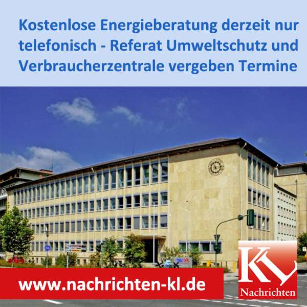 Aufgrund der aktuellen Situation finden die kostenlosen Energieberatungen der Verbraucherzentrale Rheinland-Pfalz jeden Mittwoch zurzeit ausschließlich telefonisch statt. Termine für das Beratungsgespräch vergeben das städtische Referat Umweltschutz unter Telefon 0631/365 1150 wie auch die Verbraucherzentrale unter Telefon 0631/9 28 81 oder 0800/60 75 600.