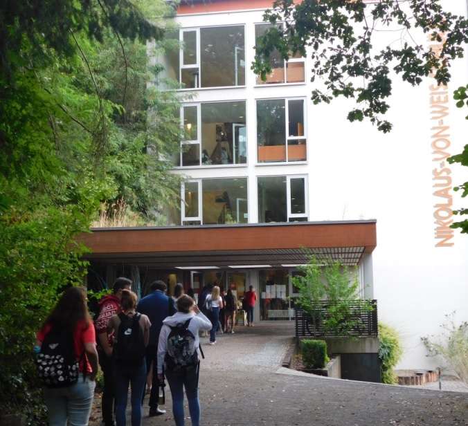 Darüber hinaus werden Sie auf der Homepage von zwei Lehrerinnen auf einem virtuellen Rundgang mit durch die Nikolaus-von-Weis-Schule genommen und können so das Gebäude von innen kennenlernen.