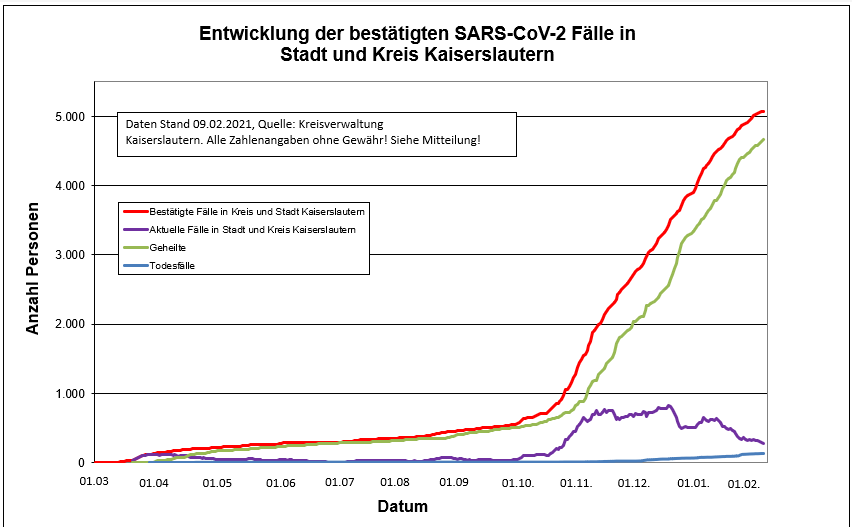 Corona-Zahlen für die Stadt und den Landkreis Kaiserslautern können Sie dieser Statistik entnehmen: