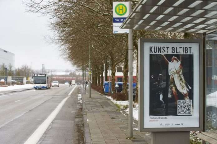 Bu: Modernes Tanztheater: Pfalztheater-Plakat „Human, 8 words“ als Teil der „Kunst bleibt“-Aktion
