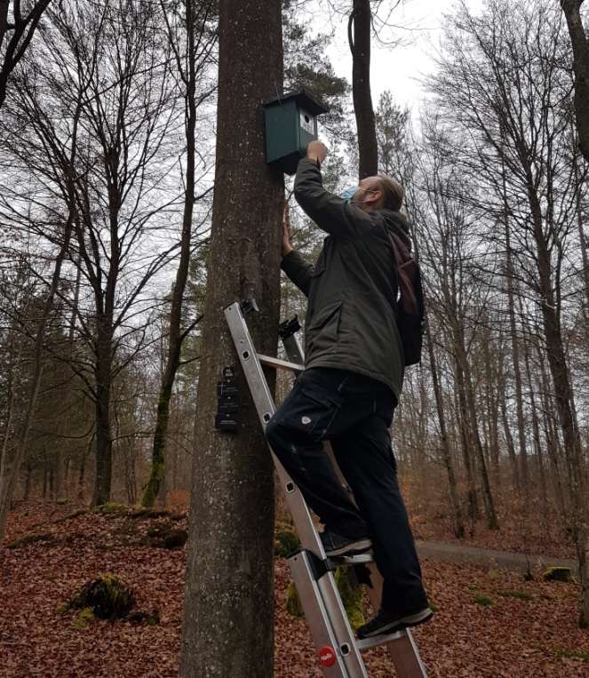 Bild Diermayr: Philipp Diermayr vom NABU KL überprüfte die Nistkästen im Ruheforst