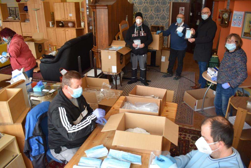 Bild: In der „Schatzkiste“ in der Pariser Str. 28 wurden die letzten Tage vom ÖGW 20.000 Päckchen à 3 Schutzmasken verpackt