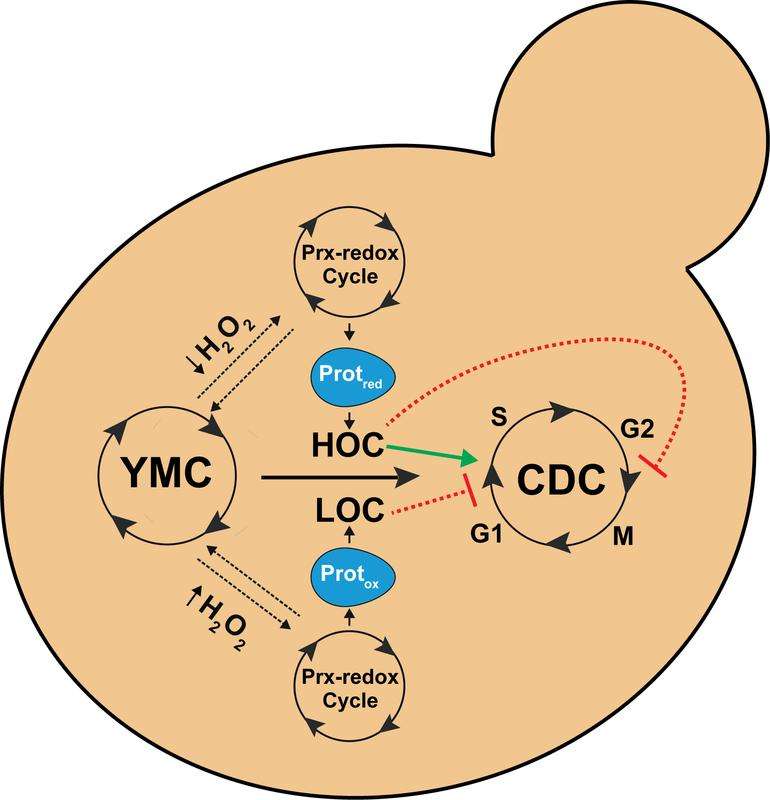 Die Frage, ob eine Änderung dieses Rhythmus‘ Grund oder Folge einer Stoffwechseländerung ist, konnten die Wissenschaftlerinnen und Wissenschaftler nun offenbar beantworten: „Wir konnten feststellen, dass die Kopplung zwischen Stoffwechsel und Zellteilung unterbrochen wird, wenn wir das Peroxiredoxin in Bäckerhefe inaktivieren“, erläutert Biochemiker Morgan, der als Juniorprofessor an der TUK forschte, bevor er kürzlich ins Saarland wechselte. Die Zellteilung läuft dann entkoppelt vom Stoffwechsel der Zellen ab. Darüber hinaus konnten die Forschenden exakt steuern, wann die Zellen in den Zellteilungszyklus ein- und austreten, indem sie die Stoffwechselzyklen präzise gesteuert haben.