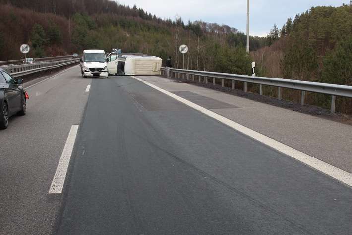 Zu hohes Tempo dürfte die Ursache eines Unfalls gewesen sein, der sich am Dienstagnachmittag auf der A63 ereignet hat. Ein 52 jähriger Fahrer eines Kleintransporters mit Anhänger verlor unmittelbar nach dem Autobahndreieck Kaiserslautern die Kontrolle über sein Gespann und krachte in die Schutzplanken. Durch den Aufprall kippte der Anhänger mit einem darauf transportierten Ford Transit um und kam auf der Seite liegend zum Stillstand.