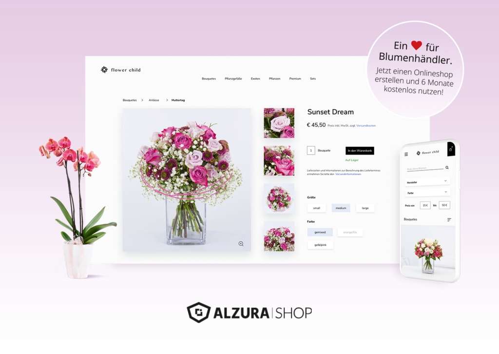 Als Sofortmaßnahme in Corona-Zeiten können alle Floristikhändler, die sich bis zum 31. März 2021 anmelden, die Komplettlösung für sechs Monate komplett kostenlos nutzen. Monatliche Gebühren und Provisionen fallen somit nicht an. Dazu gehört auch, dass Webspace, Standarddomain, SSL-Zertifikate und Support sowie alle anderen Mittel, die notwendig sind, um eCommerce zu betreiben, inbegriffen sind. (https://shop.alzura.com/flowers/)