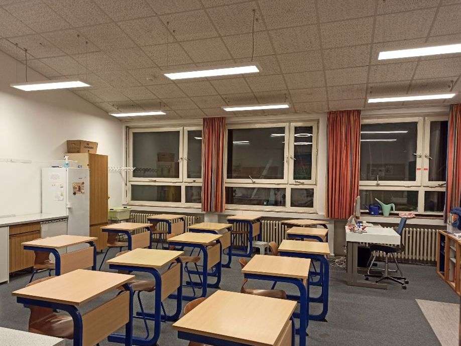 Energiesparende LED-Leuchten: Blick in einen Klassensaal des PIH