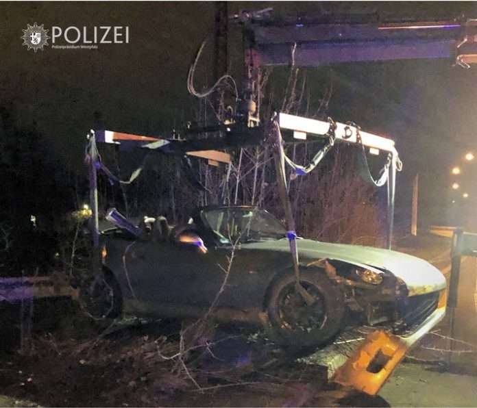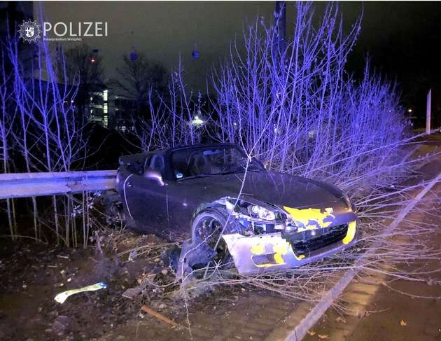 Nicht angepasste Geschwindigkeit war vermutlich die Ursache eines Unfalls am späten Donnerstagabend in der Brandenburger Straße. Ein 24-jähriger Autofahrer, der mit seinem Honda Sportwagen in Richtung Trippstadter Straße fuhr, kam in einer Rechtskurve von der Fahrbahn ab und stieß gegen den Bordstein. Offenbar erschrak der Fahrer dadurch so sehr, dass er das Lenkrad verriss und stark abbremste – mit der Folge, dass der Roadster erneut von der Fahrbahn abkam und seitlich gegen eine Wand prallte, an der eine Metallkonstruktion befestigt war. Anschließend lenkte der 24-Jährige stark nach links, so dass sich der Pkw drehte, rückwärts über die Gegenfahrbahn rutschte und schließlich auf der anderen Straßenseite in die Schutzplanke krachte.
