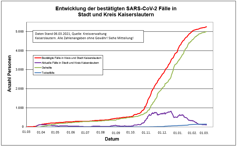 Corona-Zahlen für die Stadt und den Landkreis Kaiserslautern können Sie dieser Statistik entnehmen: