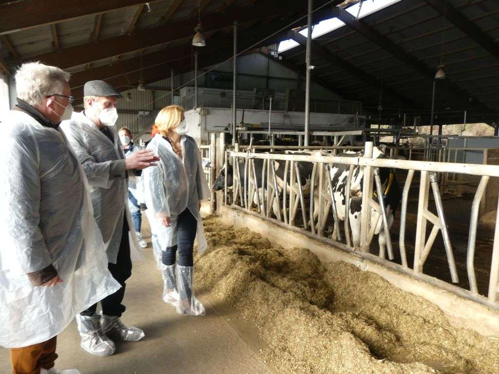 Sodann erläuterten Dr. Karl Landfried, Leiter des Hofguts Neumühle, sein Stellvertreter Dr. Christian Koch und Tanja Hermann, die unter anderem für die Unternehmenswicklung im Bezirksverband Pfalz zuständig ist, die verschiedenen Bereiche der Einrichtung, die auch Teil des Dienstleistungszentrums ländlicher Raum (DLR) Westpfalz ist. Als Lehranstalt kümmere sich das Hofgut um die überbetriebliche Ausbildung des landwirtschaftlichen Nachwuchses, die Aus- und Weiterbildung mithilfe von Fachseminaren und die Wissensvermittlung an Kinder und Jugendliche, die den landwirtschaftlichen Alltag zwischen drei und fünf Tagen kennenlernen könnten. Als Versuchsanstalt betreibe die Einrichtung angewandte Forschung und gebe dann die Ergebnisse an die Viehhalter weiter, sie publiziere in der internationalen Fachwelt und kooperiere mit dem Landmaschinenentwickler John Deere. Landfried ging auch auf „die Achillesferse“ der Neumühle ein: Der Schweinestall als Lehrwerkstätte habe eine alte Bausubstanz. Abhilfe soll ein Neubau schaffen, in dem dann auch die verschiedenen Haltungsstufen vermittelt werden könnten. Das neue Gebäude werde mit einem Umlauf für Besucherinnen und Besucher ausgestattet, um die Verbraucherbildung weiter voranzutreiben. Der gesellschaftliche Wandel fordere mehr Tierwohl und Tiergesundheit, weshalb es ein Forschungsprojekt hierzu gebe. Die Direktvermarktung der eigenen Schweine über den Hofladen wolle man intensivieren. Als Erholungs- und Naturort will man Landwirtschaft erlebbar machen. Dabei wolle man nicht nur junge Menschen ansprechen, sondern auch den Generationenaustausch ermöglichen. Ein Hofcafé solle künftig den Hofladen ergänzen. Auch zur Digitalisierung der Landwirtschaft gebe es bereits etliche Forschungsprojekte, mit denen sich das Hofgut Neumühle beschäftige. So wolle man junge Leute in der Landwirtschaft halten. Zum Wissenstransfer gehöre die Praxistauglichkeit der Versuche.