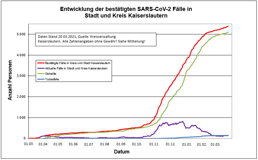 Corona-Zahlen für die Stadt und den Landkreis Kaiserslautern können Sie dieser Statistik entnehmen: