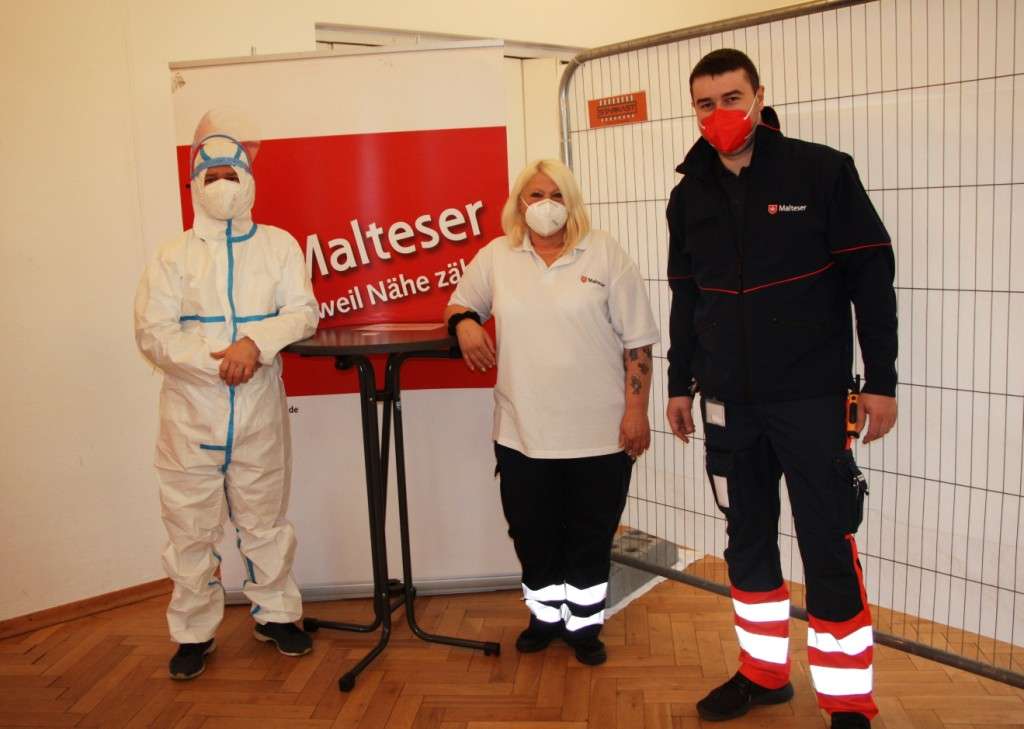 Foto (1): In engagierter Teamarbeit betreiben die Malteser das Schnelltest-Zentrum im Bürgerhaus Rodenbach ehrenamtlich. (Quelle: Malteser Weilerbach)