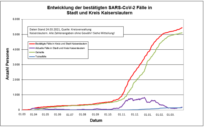Aus dem Landkreis Kaiserslautern wurde ein Todesfall gemeldet. Corona-Zahlen für die Stadt und den Landkreis Kaiserslautern können Sie dieser Statistik entnehmen: