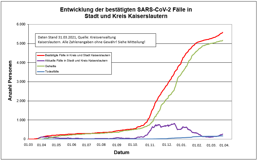 Corona-Zahlen für die Stadt und den Landkreis Kaiserslautern können Sie dieser Statistik entnehmen: