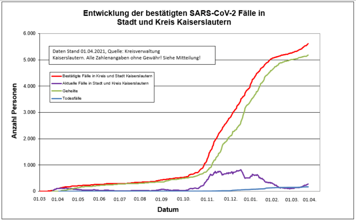 Corona-Zahlen für die Stadt und den Landkreis Kaiserslautern können Sie dieser Statistik entnehmen: