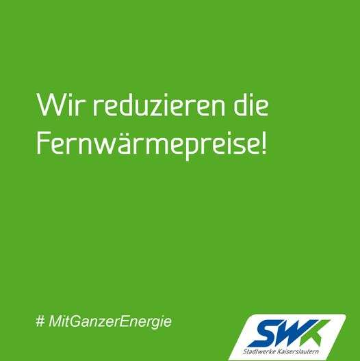 Die SWK Stadtwerke Kaiserslautern Versorgungs-AG senken zum 1. April 2021 die Fernwärmepreise gemäß der vereinbarten und veröffentlichten Preisanpassungsformel.