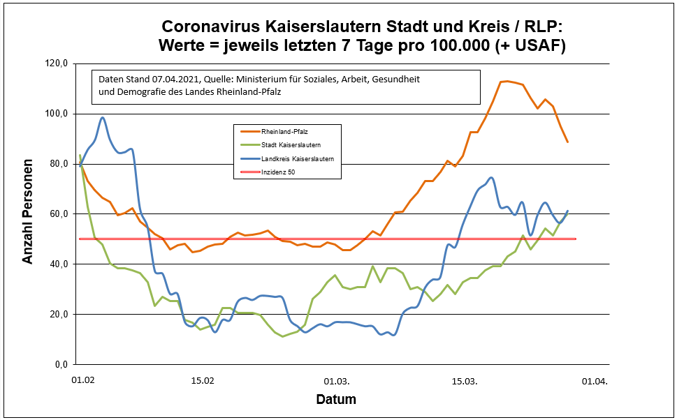 Coronavirus SARS-CoV-2: Aktuelle Fallzahlen für Rheinland-Pfalz, (Datenstand vom 07.04.2021, 14:10 Uhr)