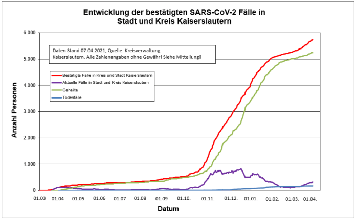 Corona-Zahlen für die Stadt und den Landkreis Kaiserslautern können Sie dieser Statistik entnehmen: