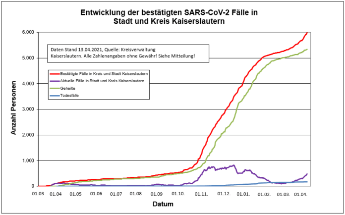 5.975 Indexfälle in Stadt und Landkreis, 5.325 genesenen Personen, 171 Todesfälle, 13.04.2021.