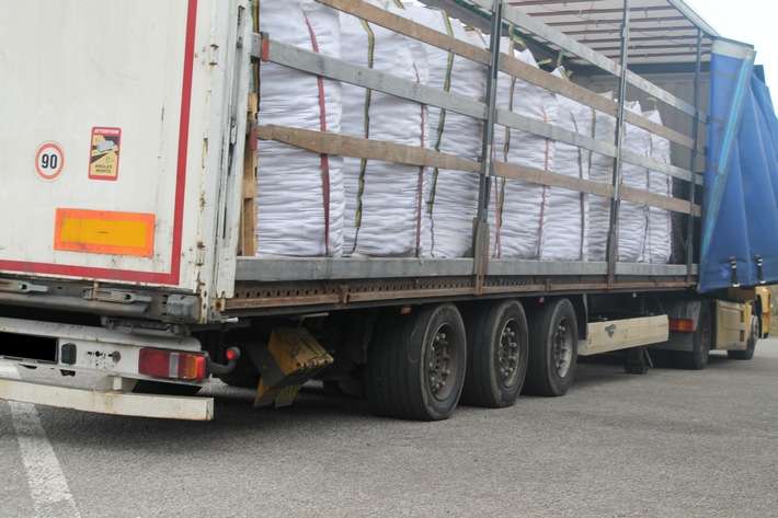 Da staunten selbst die Spezialisten der Schwerverkehrsüberwachung nicht schlecht, als sie eine mit 24 Tonnen Kartoffeln beladene, osteuropäische Sattelzugkombination auf einem Parkplatz der A 6 am Mittwochmorgen kontrollierten. Neben Schäden an fast sämtlichen Reifen sowie erhebliche Mängel der Bremsanlage war auch der Rahmen der Ladefläche des Aufliegers komplett durchgebrochen. Weiterhin fanden sich erhebliche Schäden im Bereich der Sattelkupplung des Aufliegers, als auch an der Zugmaschine. Darüber hinaus war auch die Lenkung der Zugmaschine soweit schwergängig, dass die Weiterfahrt der kompletten Kombination keinesfalls gestattet werden konnte.