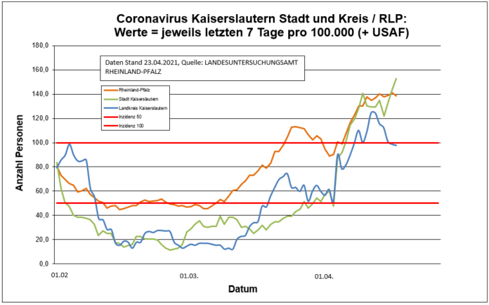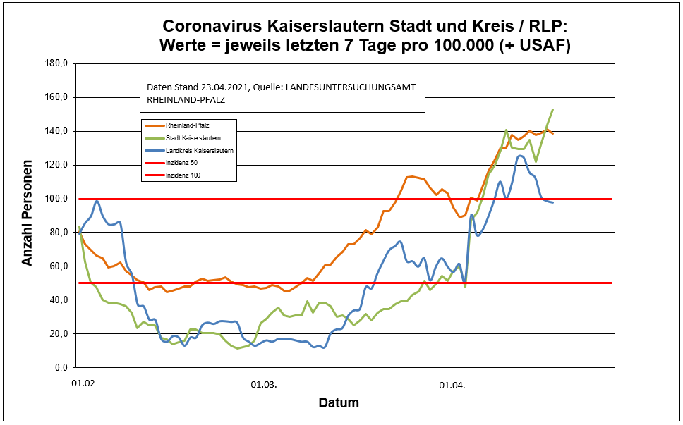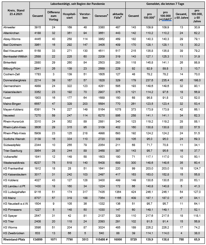 Coronavirus SARS-CoV-2: Aktuelle Fallzahlen für Rheinland-Pfalz, (Datenstand vom 23.04.2021, 14:10 Uhr)