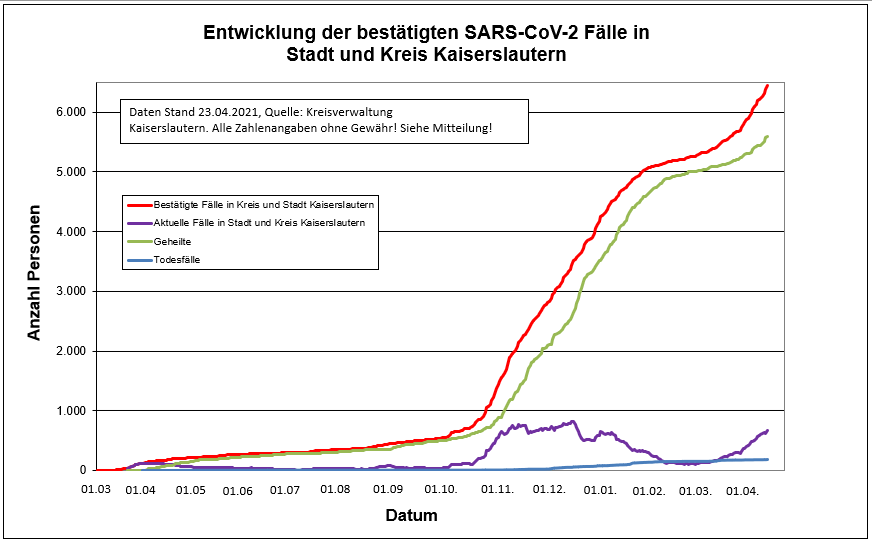 Corona-Zahlen für die Stadt und den Landkreis Kaiserslautern können Sie dieser Statistik entnehmen:
