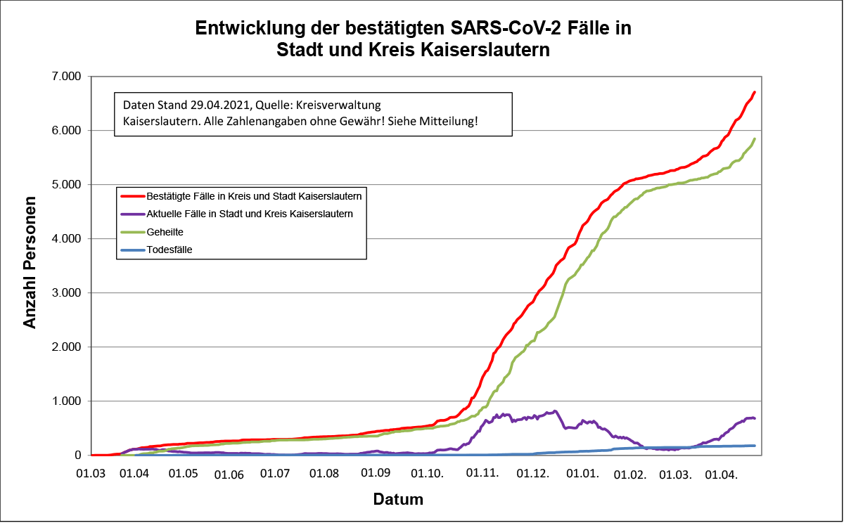 Corona-Zahlen für die Stadt und den Landkreis Kaiserslautern können Sie dieser Statistik entnehmen: