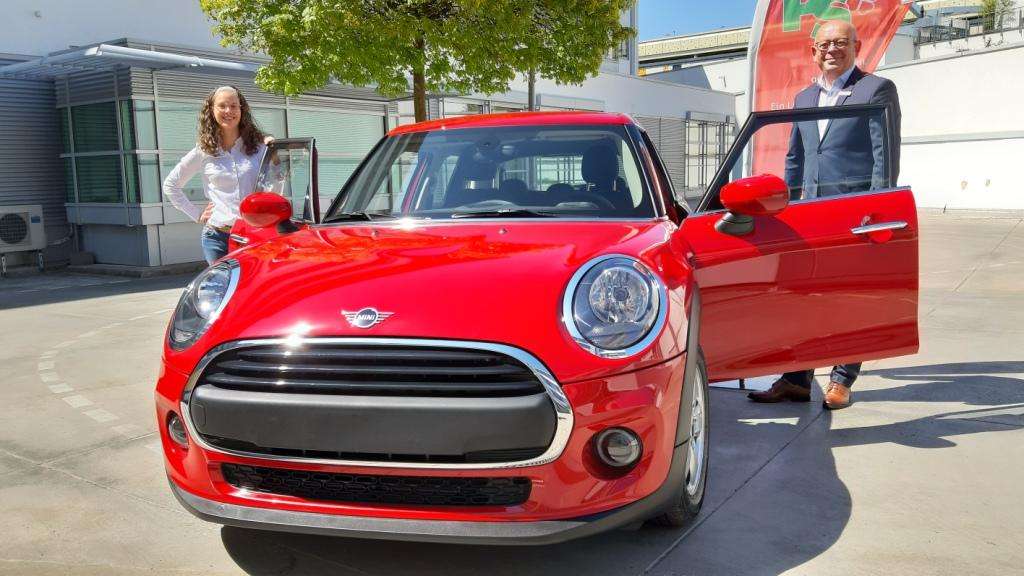 Beim PS-Sparen scheint sich Ausdauer zu lohnen! Seit mehreren Jahrzehnten ist ein Kaiserslauterer Senior Kunde bei der früheren Kreissparkasse und jetzigen Sparkasse Kaiserslautern. „Ich habe noch nie gewonnen…“, überlegte der Lautrer zunächst als ein Anruf von der Sparkasse kam und war zuerst zwischen Ungläubigkeit und Überraschung hin- und hergerissen. Aber nach einem intensiven Gespräch mit Christin Pfeffer, Individualkundenberaterin bei der Sparkasse Kaiserslautern, war die Freude ziemlich schnell spürbar. Auch für die frischgebackene Bankfachwirtin war dies eine schöne Premiere in ihrem noch neuen Aufgabengebiet. Und es war nicht irgendein Gewinn! Sondern ein Hauptgewinn bei der PS-Sparen-Monatsauslosung im April: ein Auto der Marke Mini One. Jetzt konnten Christin Pfeffer und Rainer Knoll, Leiter der Sparkassen-Filialdirektion Kaiserslautern I, den roten Flitzer an den Gewinner übergeben.