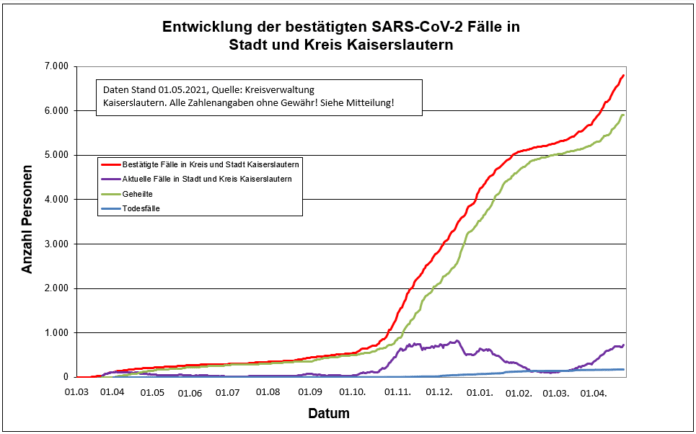 Corona-Zahlen für die Stadt und den Landkreis Kaiserslautern können Sie dieser Statistik entnehmen: