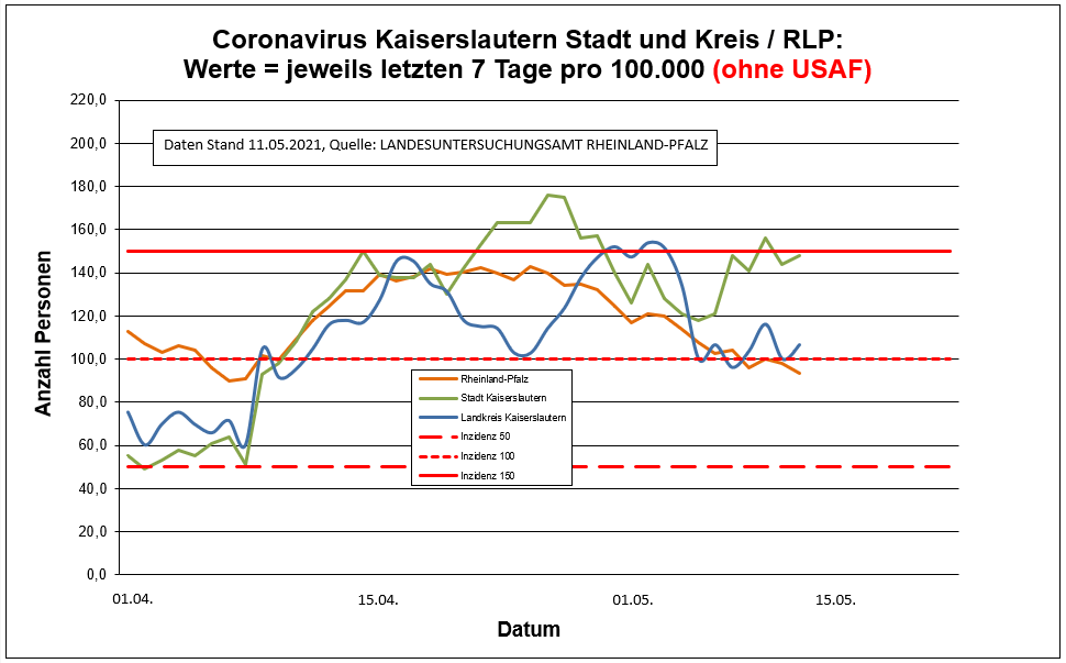 Coronavirus SARS-CoV-2: Aktuelle Fallzahlen für Rheinland-Pfalz, (Datenstand vom 11.05.2021, 14:10 Uhr)