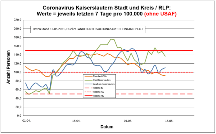 Coronavirus SARS-CoV-2: Aktuelle Fallzahlen für Rheinland-Pfalz, (Datenstand vom 12.05.2021, 14:10 Uhr)