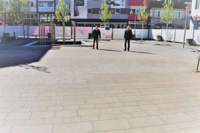 Lediglich der Brunnen ist noch nicht ganz fertig. Die endgültige Fertigstellung rücke laut Kiefer jedoch in greifbare Nähe. In wenigen Wochen werde das Wasser wieder plätschern und zum Verweilen einladen. „Nach gut zwei Jahren Bauzeit zeigt sich unsere neue Stadtmitte von einer einladenden und modernen Seite. Es bleibt zu hoffen, dass das Leben mehr und mehr auf das Niveau vor der Zeit von Corona zurückkehrt, so dass der Platz seiner Bestimmung entsprechend für Veranstaltungen, Feste und Zusammenkünfte genutzt werden kann.“