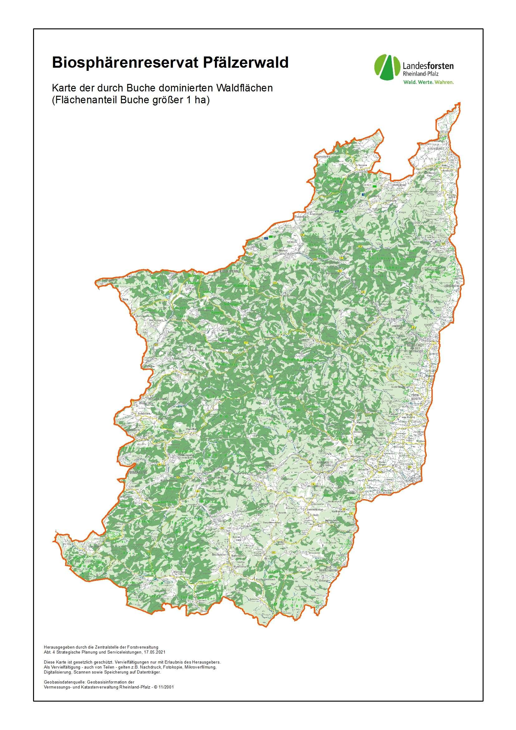 Nicht gewöhnlich! Buchen haben ihre Blätter entfalten und den Wald in einen üppigen, zartgrünen Mantel gehüllt. Eine Karte des Pfälzerwaldes zeigt, wo bei uns die ausgedehntesten Buchenwälder zu finden sind.
