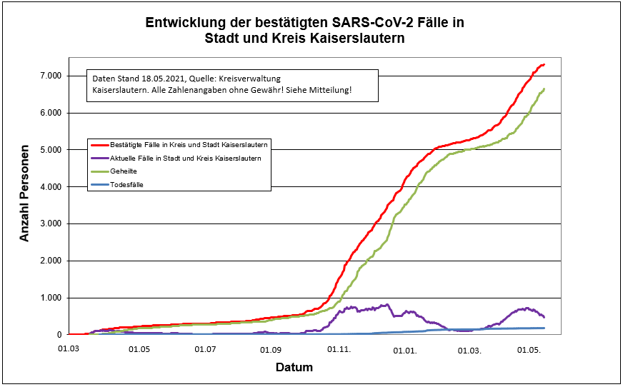Corona-Zahlen für die Stadt und den Landkreis Kaiserslautern können Sie dieser Statistik entnehmen:
