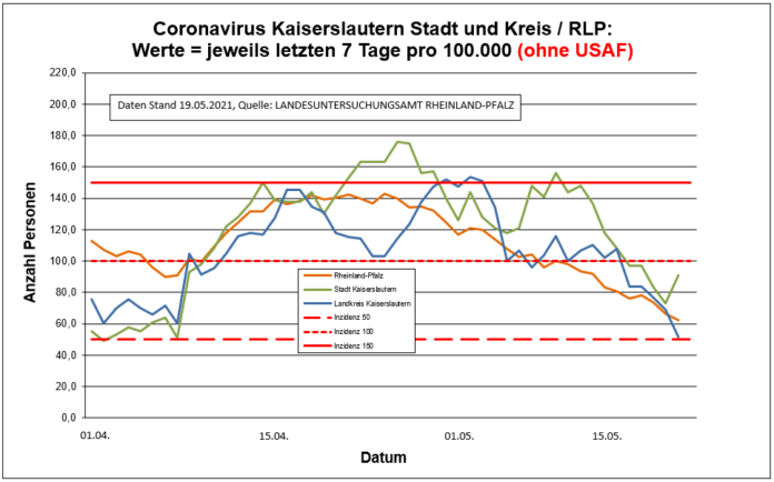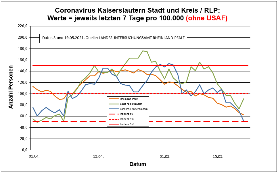 Coronavirus SARS-CoV-2: Aktuelle Fallzahlen für Rheinland-Pfalz, (Datenstand vom 19.05.2021, 14:10 Uhr)