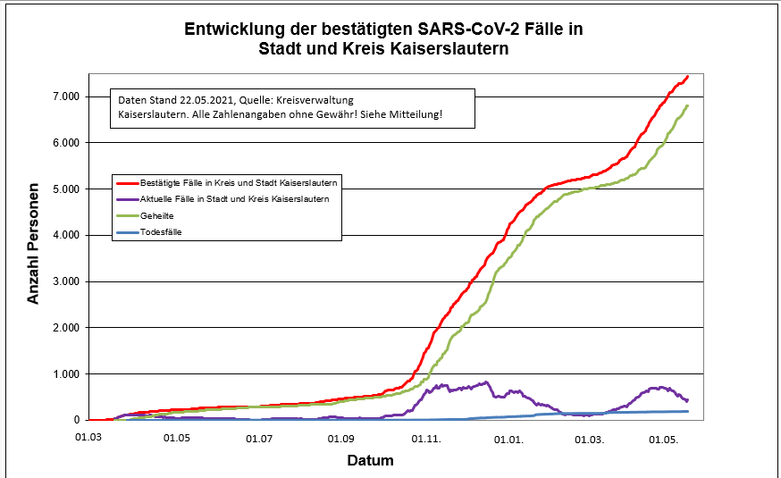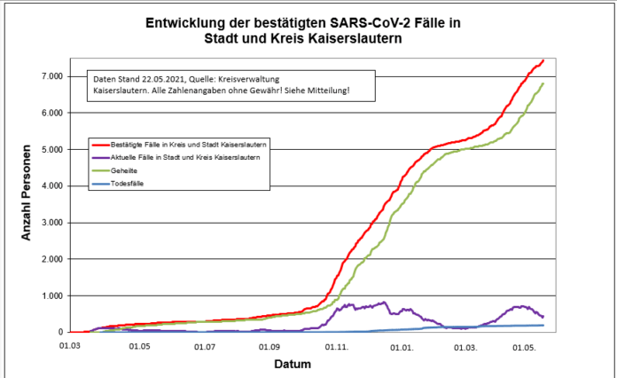 Corona-Zahlen für die Stadt und den Landkreis Kaiserslautern können Sie dieser Statistik entnehmen: