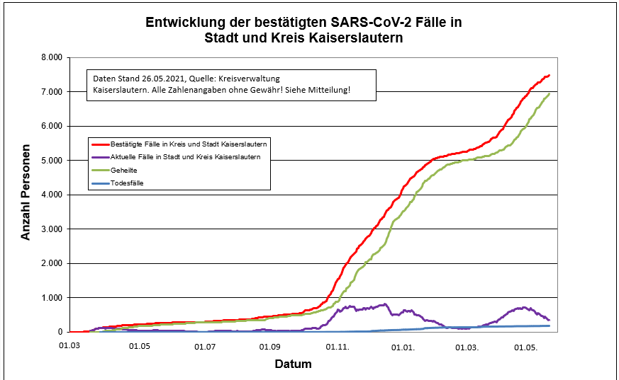 Corona-Zahlen für die Stadt und den Landkreis Kaiserslautern können Sie dieser Statistik entnehmen: