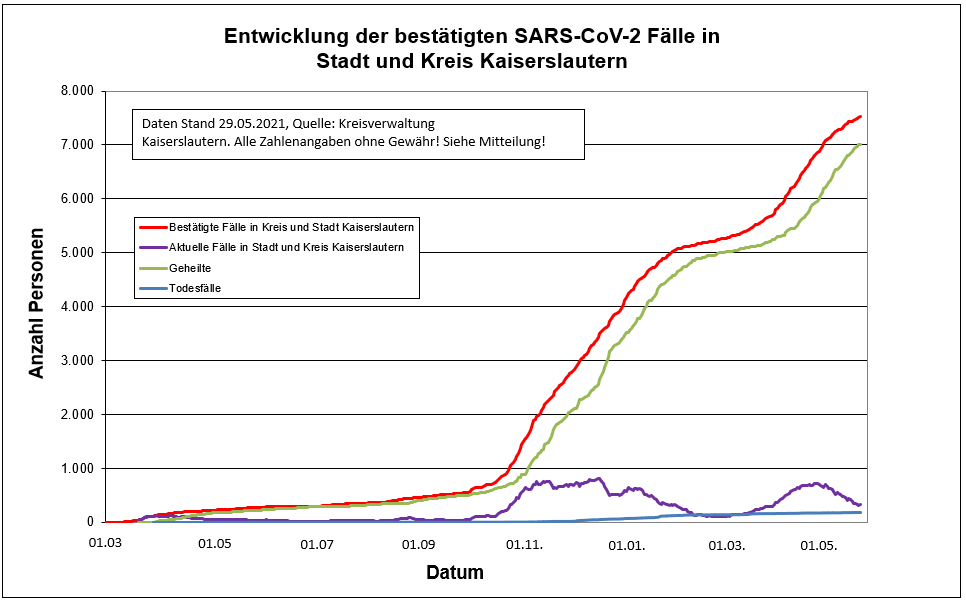 Corona-Zahlen für die Stadt und den Landkreis Kaiserslautern können Sie dieser Statistik entnehmen: