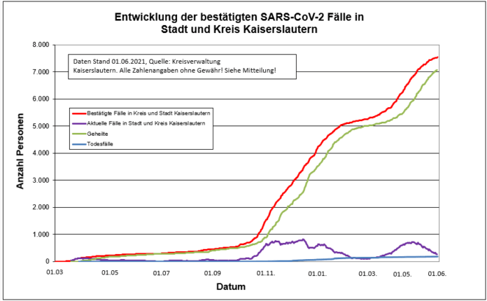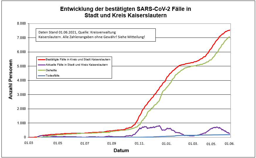 In die heutige Statistik fließt ein Todesfall aus der Stadt Kaiserslautern ein.