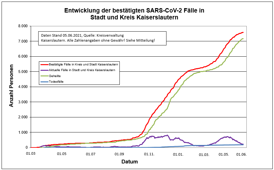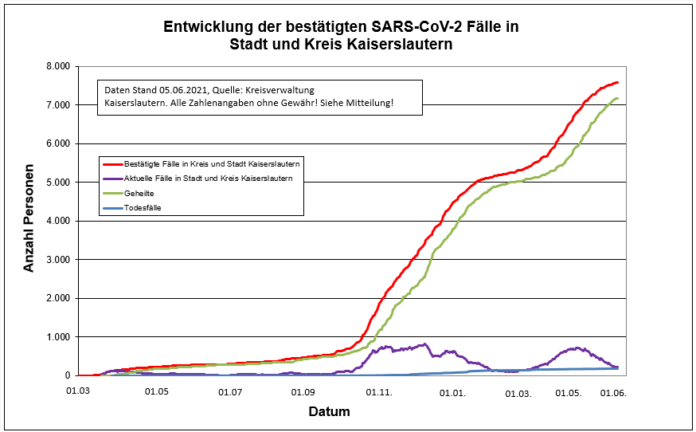 Corona-Zahlen für die Stadt und den Landkreis Kaiserslautern können Sie dieser Statistik entnehmen: