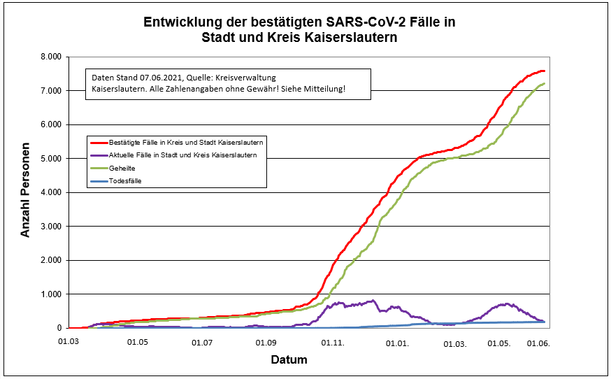 Corona-Zahlen für die Stadt und den Landkreis Kaiserslautern können Sie dieser Statistik entnehmen: