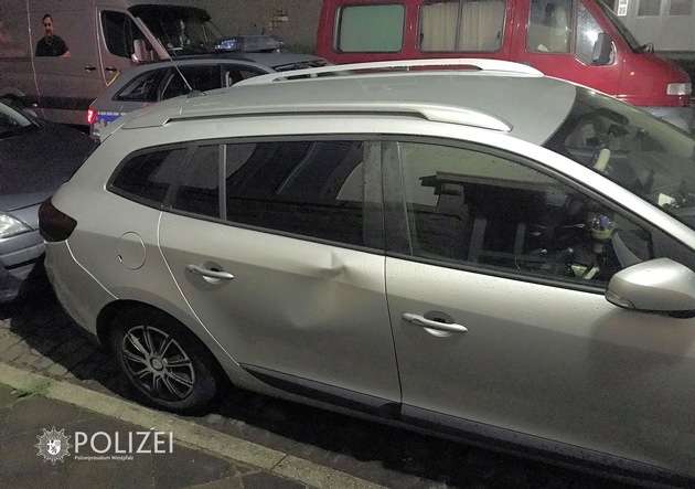 Ein aufmerksamer Zeuge verständigte gegen 3 Uhr die Polizei. Er hatte beobachtet, wie ein junger Mann mit kurzen blonden Haaren und weißem T-Shirt gegen ein geparktes Fahrzeug getreten hatte. Anschließend war der Täter weitergelaufen.