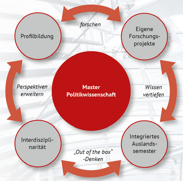 Die Absolventinnen und Absolventen des Studiengangs erwerben in einem zukunftsgerichteten Studium das Wissen und die Kompetenzen, um politische, rechtliche, soziale und wirtschaftliche Aspekte der Megatrends Globalisierung und Digitalisierung in ihren Zusammenhängen zu verstehen und zu analysieren. Forschungspraxis wird dabei in diesen Schwerpunktbereichen großgeschrieben. Die Studierenden behandeln politikwissenschaftliche Fragen durch eigene Projekte, in denen sie selbstständig Forschungsmethoden anwenden und dabei von den Forschenden im Fachgebiet betreut werden. Auch der Blick über den nationalen Tellerrand ist während des Studiums möglich: Die Konzeption des Studienverlaufsplan erleichtert es den Studierenden, das dritte Semester an einer Partneruniversität im Ausland zu verbringen.