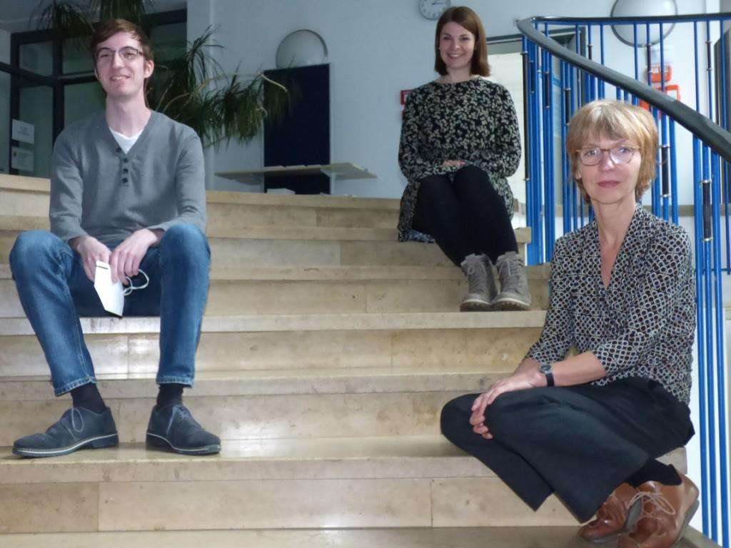 Das Bild zeigt Sabine Michels (rechts) und Alexandra Bill mit Lukas Hans, Auszubildender bei der Stadtverwaltung und derzeit im Bildungsbüro aktiv.