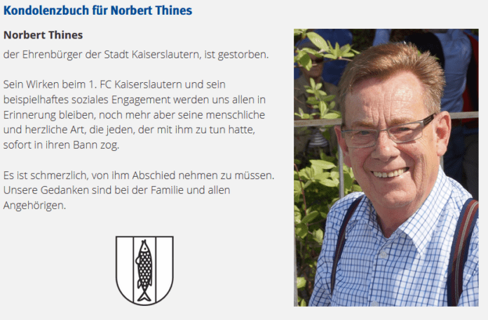 Die Stadt hat auf ihrer Homepage für ihren verstorbenen Ehrenbürger Norbert Thines ein Online-Kondolenzbuch eingerichtet. Wer eine digitale Beileidsbekundung hinterlassen möchte, hat dazu ab sofort Gelegenheit. Sie wird nach vorheriger Überprüfung auf der Homepage samt Absender zu sehen sein.
