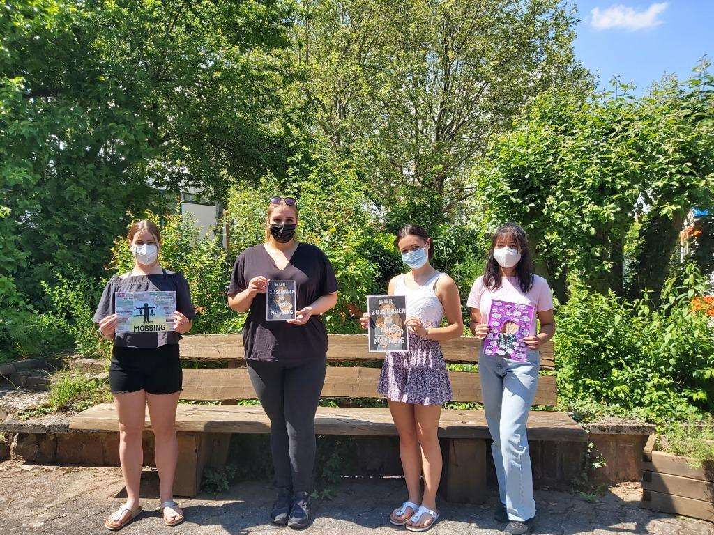 Gewonnen hat Laura Bernadyn. Sie ist Schülerin am Albert – Schweitzer Gymnasium und kreierte mit ihrem Bild, welches den Satz ,,Nur zuschauen ist auch Mobbing‘‘ beinhaltet, ein eindrucksvolles Werk, welches nun das Titelbild der stadtweiten Kampagne ist. ,,Das Bild trifft das Ziel unserer Kampagne auf eine ganz besondere Art und Weise, denn wir wollen vor allem den Mitläufer: Innen zeigen, dass sie in der Pflicht stehen – für Zivilcourage‘‘, fasst Zoe Leiner, eine Sprecherin des Arbeitskreises Mobbingprävention, zusammen. Insgesamt gab es 19 eingereichte Plakate. Auf den zweiten Platz schaffte es das Bild von Pauline Deubig, über den dritten Preis durfte sich Lara Gran freuen. Alle Siegerinnen sind Schülerinnen am städtischen Albert – Schweitzer Gymnasium.