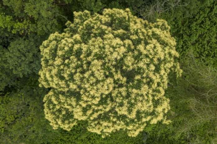 Luftbild blühende Edelkastanie (Quelle: Landesforsten.RLP.de / Sebastian Kuchenbecker)