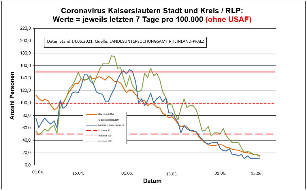 Coronavirus SARS-CoV-2: Aktuelle Fallzahlen für Rheinland-Pfalz, (Datenstand vom 14.06.2021, 14:10 Uhr)